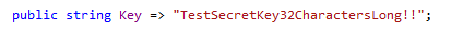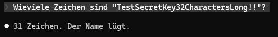 Das Problem ist der Signierschlüssel für die Tokens in der Systemtestumgebung, der muß 32 Zeichen lang sein. Das ist unser Signierschlüssel: